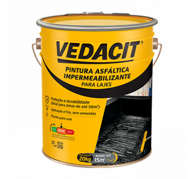 VEDACIT PINTURA ASFÁLTICA IMPERMEABIZANTE para lajes é de aplicação a frio sem emendas, pronta para uso e moldada no local, que forma uma camada impermeável sobre a estrutura. Possui grande durabilidade. - Detalhes Técnicos